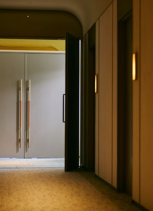 扉を開けた瞬間から始まる、特別な一日。天井に連なる柔らかな灯りが、訪れる人をやさしく包み込む。静かな緊張感と高揚が交わるロビーとエントランスで、これから始まる時間への期待がゆっくりと満ちていく。