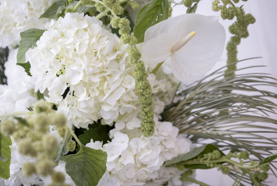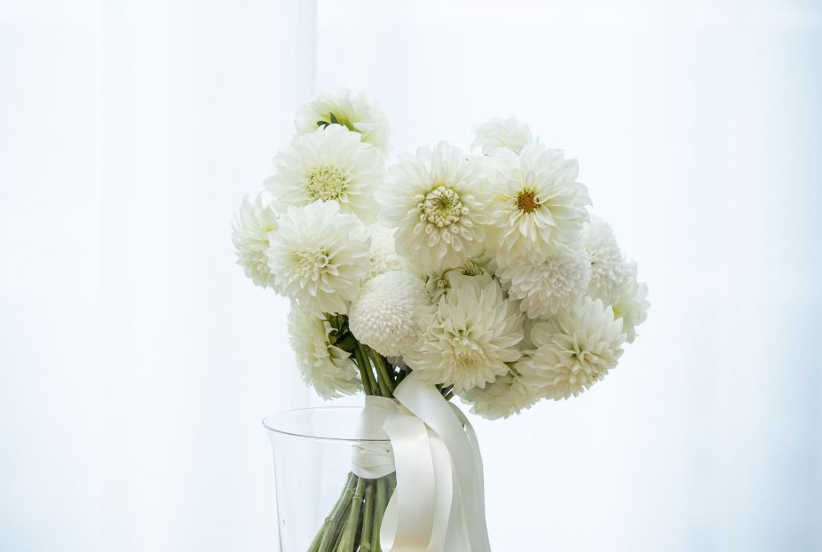 挙式は綺麗な空間になるように白で統一しつつも、